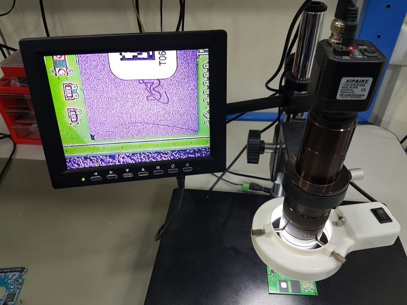 Come da protocollo, ogni elemento di una PCB, ancor prima di essere dissaldato in laboratorio, per la successiva acquisizione tramite strumentazioni e software dedicati, viene accuratamente osservato al microscopio elettronico, per verificarne l’integrità fisica, soprattutto in caso di danni da urto.